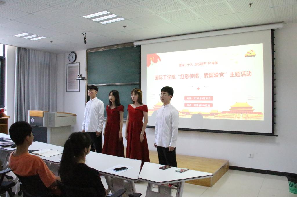 一首红歌,记录一段峥嵘岁月;一首红歌,象征一面光辉旗帜。为铭记党的光辉历史,弘扬伟大建党精神,6月29日,bevictor韦德国际直属党支部组织员工党员、入党积极分子在综南209教室开展“喜迎二十大、庆祝建党101周年”系列活动——红歌传唱,爱国爱党。