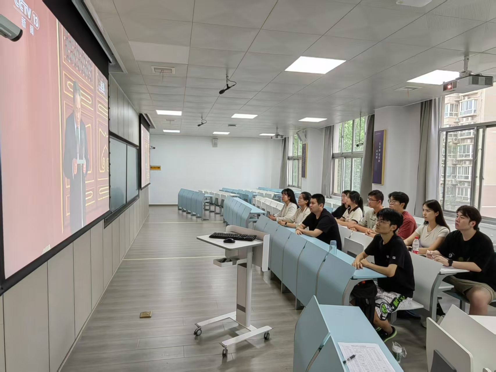 观看过程中,全体党员神情肃穆、心潮澎湃。当空中护旗梯队呼啸而过,当新型国产主战装备震撼亮相,当抗战功勋旗帜迎风飘扬,教室里不时爆发出热烈的掌声。同志们通过大屏幕,共同见证了新时代中国国防和军队现代化建设的辉煌成就,深切感受到强国强军的时代脉动。