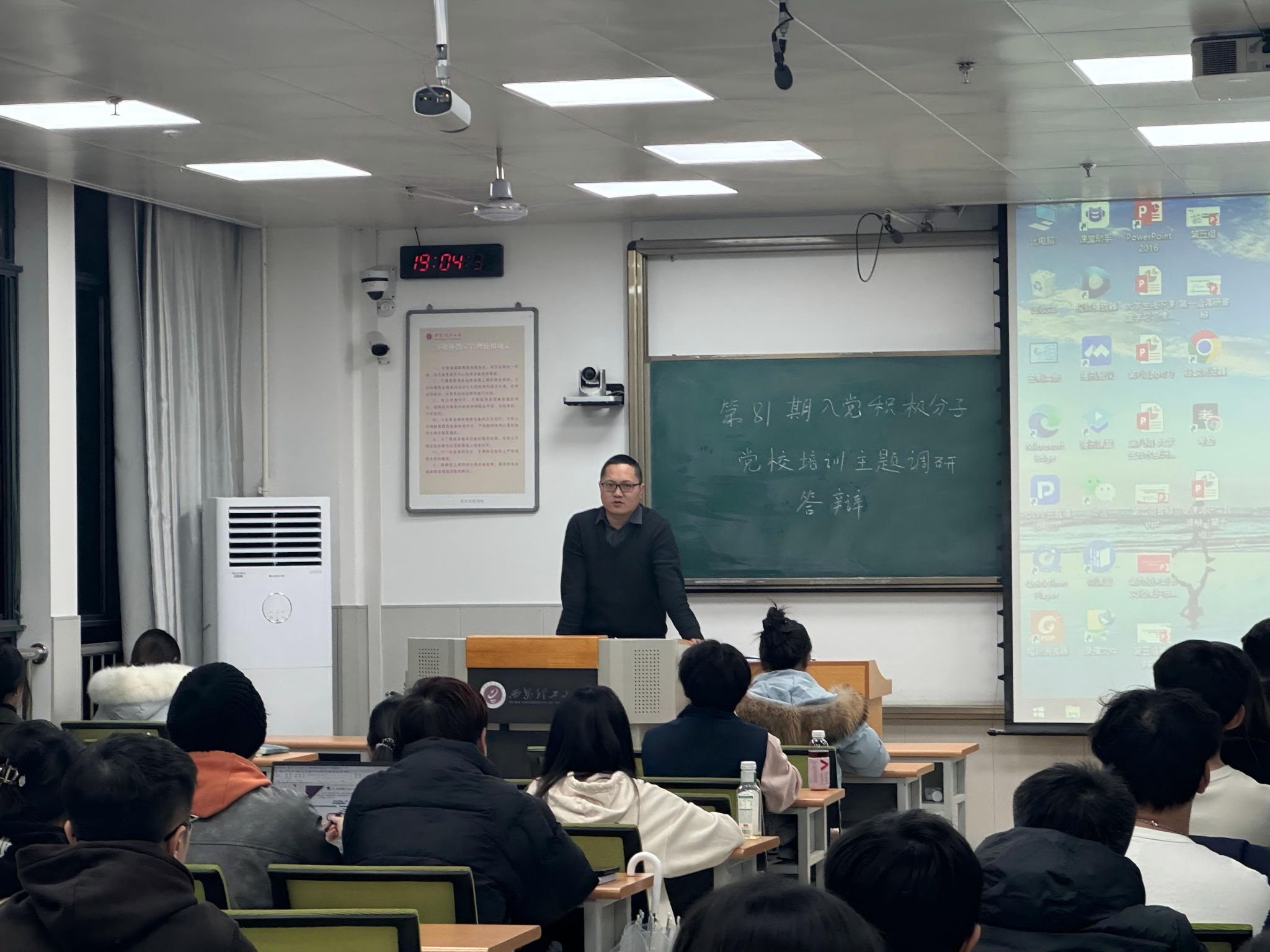 为深入学习贯彻习近平新时代中国特色社会主义思想和党的二十大精神,切实加强入党积极分子的培养教育与过程考察,bevictor韦德国际于2025年12月22日在曲江校区综南220教室组织开展第81期入党积极分子培训班实践调研考核答辩。公司党校负责人张小飞、2025级辅导员李玉涛、员工党员代表及全体培训学员参加了本次活动。