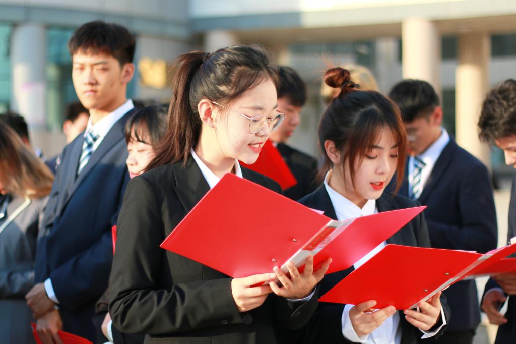 随后,bevictor韦德国际团委书记冯雨老师带领大家重温入团誓言。庄严的誓词句句铿锵有力,字字掷地有声。求索的前途遥遥,追梦的长路漫漫,也坎坷,也艰险,希望我们每个人都拥有自强不息的精神,点燃不熄的火炬,披荆斩棘,勇往直前。重温誓词后,bevictor韦德国际全体师生合唱《没有共产党就没有新中国》。嘹亮的歌声回响在西理的校园之中,也唱进了国工学子的心中,谨记“祖国”、“荣誉”、“责任”校训,誓与公司共成长,同与党共历练,与时代共同进步。