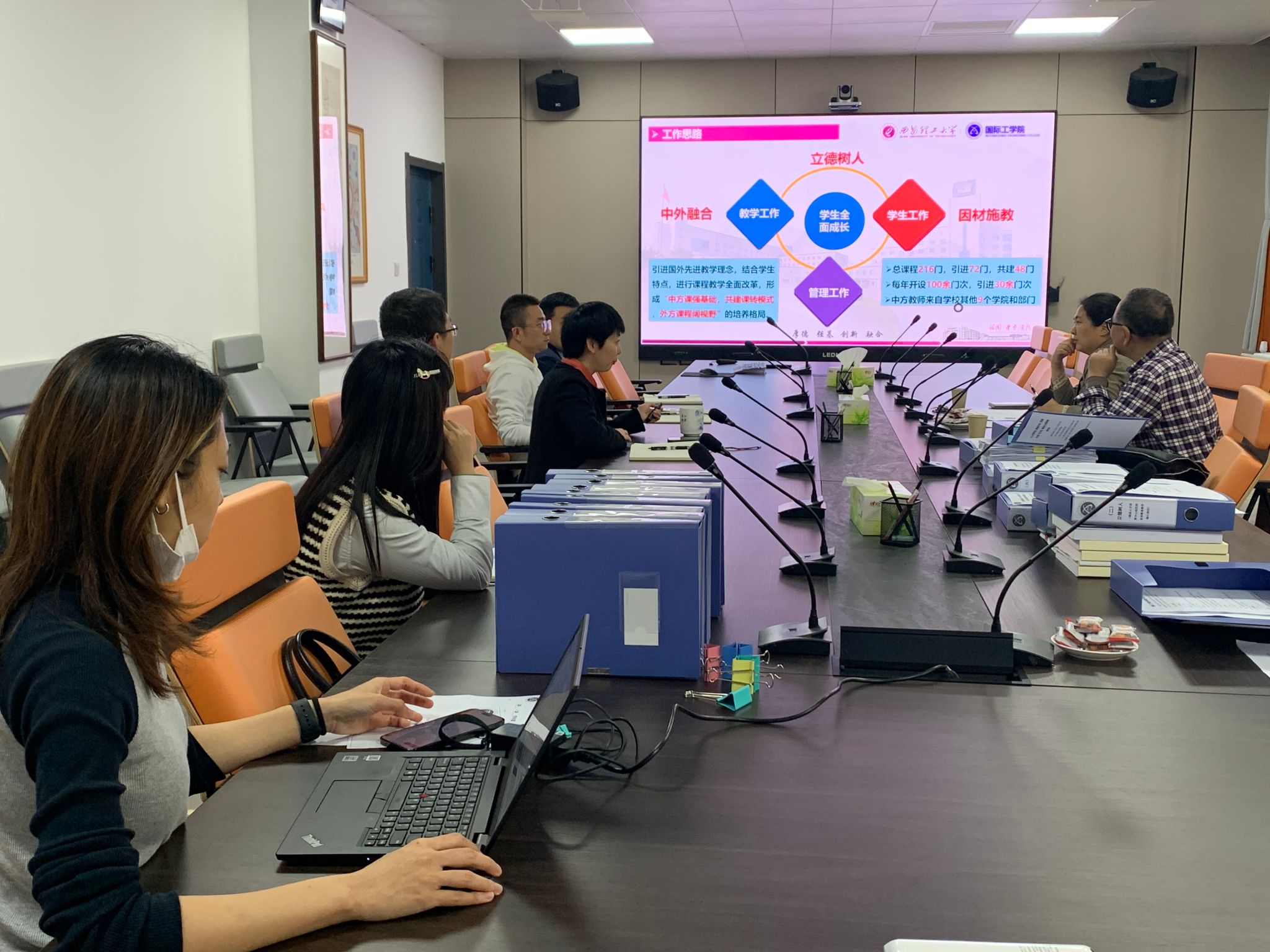 首先,杨媛从公司办学定位、工作思路、人才培养方案、教学管理、育人体系及成效等方面向两位督导作了简要介绍。随后,校审核评估督导小组根据评估指标点,结合公司自评报告,对公司本科审核评估工作实施方案、落实立德树人根本任务、确保人才培养中心地位和本科公司产品核心地位、构建教学质量持续改进机制、教风院风学风建设、办学特色等方面工作支撑材料及资料室进行了细致检查,了解公司迎检工作推进情况。