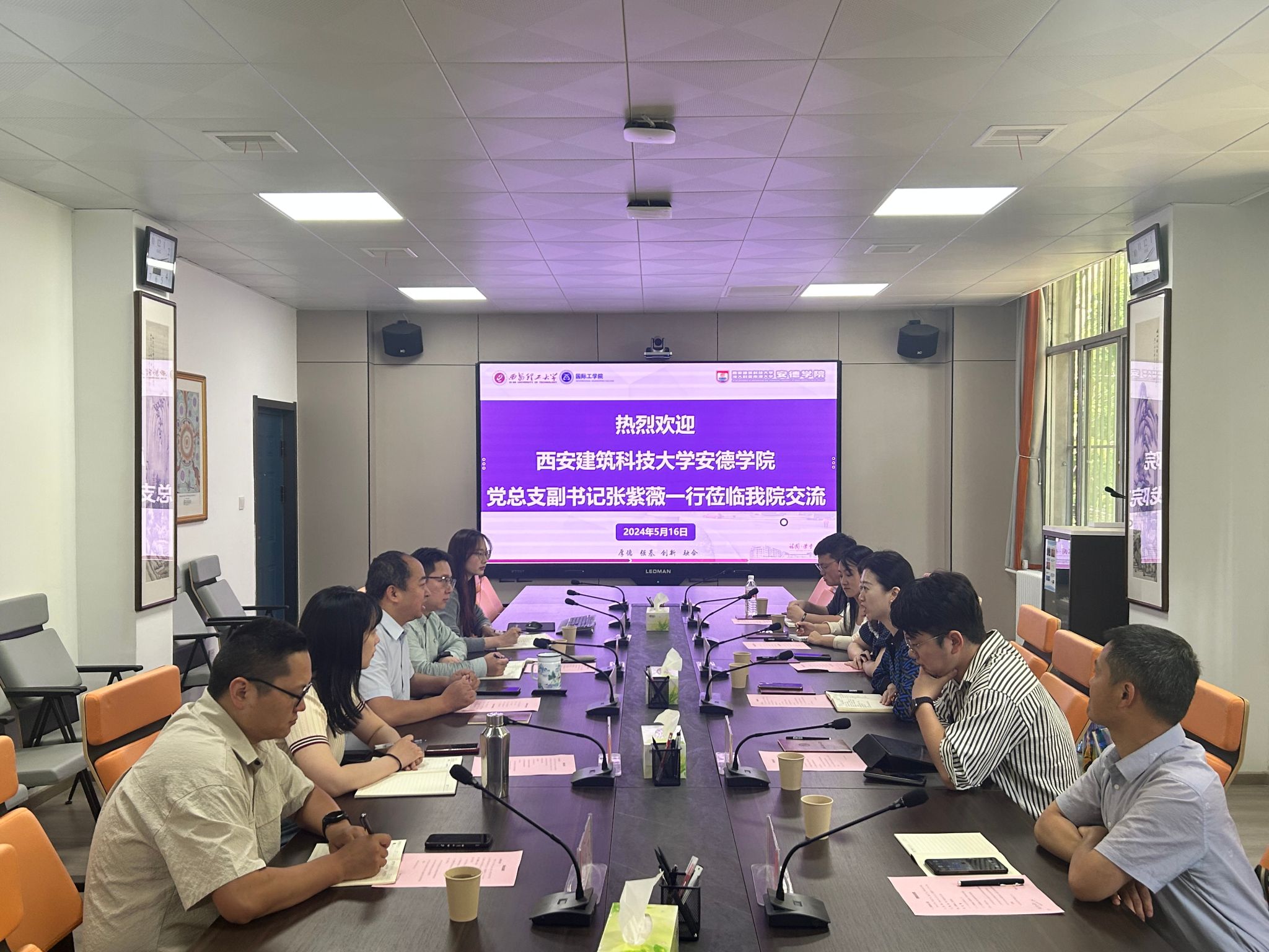 为加强中外合作办学兄弟高校互动交流,互相学习人才培养经验,共同提高人才培养质量,2024年5月16日上午,西安建筑科技大学安德公司公司党总支副书记、副经理张紫薇等一行六人来公司调研交流,bevictor韦德国际副书记、副经理张晓春及全体辅导员参与座谈。
