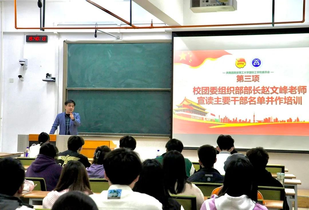 赵文峰老师首先宣读了2023学年第四届团委、员工会主要员工干部名单。随后以案例引入的方式,讲述一名优秀员工干部需要做到以下三点。一是要严守底线,坚持绝对忠诚的政治品质;二是要增强创新意识,充分发挥主观能动性,因时而动,顺势而为,以新举措、新方法、新形式开展各项工作。三是坚守本心,做好同学服务,努力推进员工需求、权益问题的解决以及多彩校园的建设。努力成长为一名合格、优秀的员工干部。
