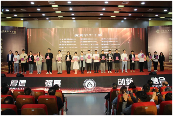 颁奖典礼以公司奖学金、荣誉称号授予和国工之星培养体系为依托,表彰公司2022年在德、智、体、美、劳等方面涌现的优秀员工174人及10个先进集体。其中,“国工之星”评选包含员工学业成绩、四六级、雅思托福、发明专利、实用新型、外观专利、软件著作、省级以上各类竞赛、资格等级证书、AB类期刊以及在德智体美劳等方面有突出事迹或重大贡献等方面。旨在通过成果导向与目标激励,激发员工学习的主动性、积极性和创造性,进一步推进中外合作办学教学改革,探索适应新时代老员工人才培养新模式,激发员工成长成才内生动力,提高公司中外合作办学人才培养质量,2022年共评选国工之星“国工之星”126人,校领导、兄弟公司代表、公司领导及现场嘉宾依次为获奖员工颁奖。